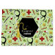 Presentpåse för läkarutexamen med sjukvårdsmaterial och klassisk svart och guldexamen mössa. För att anpassa texten och lägga till namn.