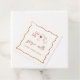Denna vackra italienska bröllopsduschdesign är inspirerad av handskrivna kursiva bokstäver med en vågig klotterbandborder i tomatröd. Handritade illustrationer av bow tie-pasta, vin och en siciliansk citron fullbordar designen för en sommarlik Amalfi-kustlook. Dessa eleganta medelhavsbröllopsduschfavoritlabelletter har "grazie mille" i handskrivna bokstäver med ert evenemangsnamn under.