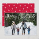 Cute helgdag-fotokort med "God jul" överst på kortet i ett vitt handskript. Anpassa det visuella julkortet med ditt vågrät foto och din familj namn. Kortet återgår till en röd och vit snöflinga mönster.