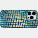 Cyan teckning över suddigt grått som ser ut som en tangel av fiskenät över en viss vriden sten eller sten. Den här versionen har små smak som ser ut som skalmålning.
