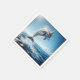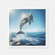 En delfin hoppar gärna ut från vatten med en färgstark party-hatt, under en klar blå himmel.