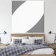 Dolfin. Den här moderna abstrakta designen har en stor, framträdande, vit kurvformad yta som löper diagonalt uppifrån till grund i designen och skapar generöst, subtilt böjt linjer i den sammansättning där de två strömmarna av vitt och grått färg möts.