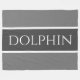 Den här söt oceaniska designen innehåller DOLPHIN-text inuti en mörk grått center rand som markerats med vitt streck mot mjukt grått yttre ränder.
