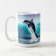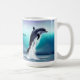 Mugg har en vacker digital konst som illustrerar att en delfin hoppar ut från havet med himlar i bakgrunden. Det skulle vara en underbar gåva till någon som kärlek delfiner. Texten längst fram i mugg är anpassade med ditt eget eller kan lämnas som det är.