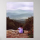 Den här bran är fotograferad på reseaffischen och fotograferar en av de underbara hökarna i New Hampshire. En hiker har följt Nancy Pond-banan ända till utloppet i Norcross Pond, vilket ger spektakulära synpunkter på Pemigewasset Wilderness, Mt. Bond, Twin Range och Franconia Mountain Range. Han har lagt sin vandring på sten och vilar på en stor granitplatta. Han bär en röd bandana och en lilac lila-skjorta som säger: Support Jazz. Vista är storartad med himlar och berg i ett färg-område av blått, grönt och mauve.