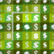 Fabric med sömlös grönt amerikanska dollarsignatärpengar mönster