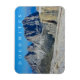 En vacker syn på några av topparna i Dolomitberget i Italien tryckt på en kylmagnet i souvenir.