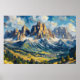 Dolomites Sass Rigais och Furchetta inspirerade bergstopparna. Utskrift av stor genererad oljemålning. En högupplöst bild garanterar vass kvalitet på alla storleka.
