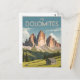 En brinnande och nostalgisk bild av Dolomiterna, Italien, känd för sina dramatiska bergstoppar och fantastiska naturskönhet. Konstruktionen fångar upp det robusta alpinlandskapet med kalkstensklippor, spola grönt ängar och serene Berge sjöar. I en vintage stil frammanar teckningen Dolomiternas lugn och äventyrliga anda och uppmanar tittarna att uppleva sin frilandsallyr och scenmajestät.