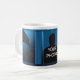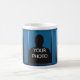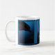 En grafisk design av delfiner i djuphavsblått av konstnären/designer Charmaine Paulson på ett kaffe mugg. Mugg har en ram för ditt foto.