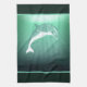 16 x 24-tums mörk grönt kökshandduk med fantasi av en delfin i gröntens hav. Se matchning av napkin från trasa, papprare cocktailnapkin, bordstablett från trasa, papprare bordstablett och underlägg. Se hela uppsamlingen av köksdukar under havet i LIVSMEDELSEN/BEV| Länkavsnitt.