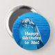 Dolphin-födelsedagspresent till födelsedagspojken, eller flickan, till bäran. Stift kom i fem storlekar, runda eller kvadratiska och kan bäras på party-dagen eller i skolan. Ett leende delfinfoto är bakgrunden till vågigt, vit text som du väljer.