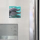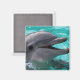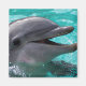Ett sött foto av ett delfinhuvud i blå grönt vatten, med en flipper som knappt syns. Underbar för alla delfinentusiaster!
