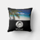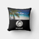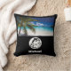 Dolphin silhouette hoppar över ett monogram. Ovanför fenan är ett foto av stranden och havet som kan anpassas till din egen själfie eller bild. Under havet finns ett textområde för namn bricka.