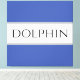 Klassskt starkt fet teckensnitt inuti ett markerat vitt rand mot medelstora blå bakgrunder med texten "DOLPHIN". Texten är valfri och kan vara personlig.