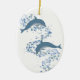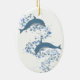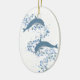 Kvismisk ovaldekoration, med grafik av två delfiner som simmar genom en spiral av vatten bubblor. Underbar på Julgran eller som andra dekorativa användor runt huset, som ett fläkt-drag eller hängning på väggen. Gör en underbar gåva till alla som lever i kärlek och delfiner.