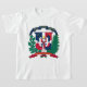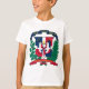 Jackande av arm från Dominikanska republiken. I Dominikanska republikens jacka finns en sköld i färg som flagga på liknande sätt i karantän, understödd av ett lagerfat gren (lämnat) och en handflatan (höger). Ovanför skölden finns ett blått band som armar det nationella mottot: Dios, Patria, Libertad (Gud, Fatherland, Liberty). Under skölden visas ord República Dominicana på ett rött band. I mitten av skölden, uppdelad med sex spjut (tre på vardera sidan), är den fyra främsta dominikanska banderollen en bibel med en liten gyllene kor ovanför den, som öppnas (enligt folkopinionen) för Gospelet John 8:32, som lyder Y la verdad os hará libre (och sanningen ska göra dig fri). Arm jackar i mitten av Dominikanska republikens flagga.
