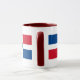 Dominikanska republikens flagga har ett centrerat vitt kor som sträcker sig till kant och delar upp flagga i fyra rektanglar - de översta är blå (på den blå sidan) och röd, och de grund är röda (på den blåa sidan) och blå.