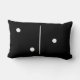 Ett dominolekbiet med vit pricker på en svart bakgrund.