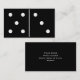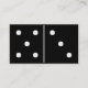 Ett dominolekbiet med vit pricker på en svart bakgrund.