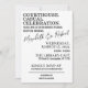 Inbjudan hälsar gästerna varmt välkomna till att bevittna parets giftermål i en rättfram men förfinad ceremoni i domstol. Det framgår att deltagarna efter dessa vokabockar bjuds in att njuta av cocktails av avslappnader och går med i ett litet, intimt firande. Enkelheten i inbjudan understryker att man fokuserar på parets kärlek och tillfälle. Den meddelar att evenemanget kommer att vara uppmjukat och intimt, och betonar gästernas närvaro framför extravaganta gåvor eller formaliteter.