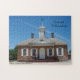 En konst avbildar av den mäktiga domstolen i historiska koloniala Williamsburg, Virginia.