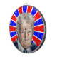 Foto av Donald Trump har ändrats till en karikatyrdesign. Bakom ansiktsbilden finns en röd-vit-blå bakgrund i stil med en pinwheel. Precis vad som passar för ditt spelrum, oavsett om du älskar eller hatar honom.