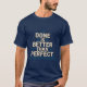 Powerful 'Done is Better Than Perfect' graphic with bold serif font in triangle layout. Navy and gold design perfect for office posters, gym tees or merch.