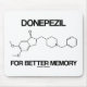Donepezil är en acetylkolinesterashämmare och är känd som en palliativ behandling mot Alzheimers sjukdom. Visa den kemiska molekylsidan med munstycket med den kemiska strukturen av donepezil tillsammans med texten som säger allt: "För bättre minne". Ledamot av vetenskapen som säger "mousserande för en älskad som drabbats av Alzheimers sjukdom".