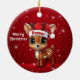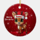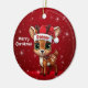 Donner! Celebrate the holiday season with this festive round ceramic red ornament featuring an endearing woodland forest animal cartoon graphic of a cute baby reindeer wearing a Santa hat, and Merry Christmas written in white. Perfect deer with antlers for decorating your tree or as a thoughtful gift, this whimsical doe decor makes a cherished keepsake for years to come. Customize by changing the text, the font, the font color, or remove the text. You can even transfer this design onto other products. Enjoy this design your way! Check out ForestBabies Xmas Deer Collection for matching decorations. 🎄🩌 Dimensions: Diameter: 2.87". Thickness: 0.156". Weight: 1.4 oz. Made of white porcelain. Full-color, full-bleed printing. Printing on both sides. Thread does not come attached/tied.