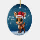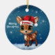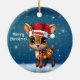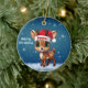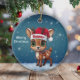 Donner! Cute whimsical reindeer graphic. Unique snowy deer illustration. Blue festive holiday season round ceramic ornament. Woodland wildlife forest animal, Santa hat character and Merry Christmas written in white. Great for decorating your tree or as a thoughtful gift, this baby doe with antlers winter snow decor makes a cherished Xmas keepsake for years to come. Customize by changing the text, the font, the font color, or remove the text. You can even transfer this fawn design onto other products. Enjoy this cartoon illustration your way! 🎄🩌 Dimensions: Diameter: 2.87". Thickness: 0.156". Weight: 1.4 oz. Made of white porcelain. Full-color, full-bleed printing. Printing on both sides. Thread does not come attached/tied.