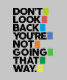 Bold typographic design with the uplifting message "Don't look back, you're not going that way" — perfect for shirts, posters, and gifts that inspire forward momentum and fresh starts.