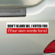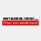 Skyll inte på mig. Jag röstade för [er egen ord här] Obs! Du kan ändra bakgrunden färg i anpassadet från rött till spelar ingen roll färg som du vill. Klicka bara på knappen "Anpassa den!" ovan och klicka sedan på den lilla pilen bredvid "Redigera", välj "Bakgrund" i listrutan och välj önskat färg i rutnätet färg. Du kan också ändra teckensnittstypen, storlek och/eller färg till dina specifikationer genom att klicka på textområdet [Ditt eget ord här] under "Anpassa det!".