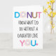 Ett sött Alla hjärtans dag-kort för dotter med en donut-design som jag skapat med ord "vet inte vad jag skulle göra utan en dotter som du". Insidan läser ett meddelande från Alla hjärtans dag, som du lätt kan anpassa. Baksidan har rosa hjärtan. Se foton.