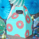 Tur design, perfekt för alla som kärlek mat! Rosa ger mönster en blå bakgrund. Öka stil och rymden med den här konsten!