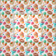 Cute och roligt illustrerade mönster med chokladfrostade donötter med sprinkler, mintchokladglass, chokladglass sundaes, neapolitan glass sundaes, jordgubbsost, jordgubbar, blåbär, ljusa rosa macarons med fyllning av gult och små hjärtan i mönster. En viskartad konstruktion för vilket material som helst.