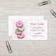 Bunten av donuts med stänk-, choklad- och rosaglasyr på kaka på rosor och vitpolka pricker bakgrund. Den underbara visitkorten för bagerier, munk shoppar, bagare eller coffee shop.