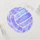 Den här söta volleyball-temat runt festinbjudan har ett lila färg-tema med ljusblå accenter och har konturbilden av en enkel volleyboll - en känslig doodle mönster av paislies, blommor och fjädrar i vitt täcker alla utom en av volleybollens texturerade utseende paneler - anpassa med sina firande-detaljer - efter katz_d_zynes