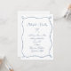 Dusty Blue Bröllopsinbjudan, med en handritad slinga och ram med band och handskriven typsnitt.