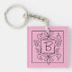 Doodle keychain with custom name monogram. Personalize with your initial letter. Pink or custom color.