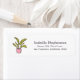 En söt returadressetikett med en handritad, doodle-stil illustration av en grön växt i en rosa kruka till vänster om etiketten. Anpassa enkelt med ditt namn och adress.