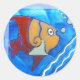 Hand målade DooDles fisk på en havsblå bakgrund. DooDles-detaljer målas i guld rött och opalins grönt.