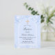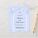 En ljusblå bakgrund och en välvd ram. Dekorerad med ljusblå konfetti. Personifiera med namn och ceremonidetaljer. Elegant handskriven stilsnutt.
