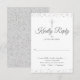 Ett stilfullt RSVP-kort med ett elegant silverkors och chic silvertypografi. Perfekt för dop-, namnsdags- eller första nattvardsfirande. Designad av Thisisnotme©