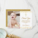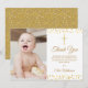 Elegant dop dop fototackkort med ömtåliga gyllene hjärtan och ett elegant guld krucifix. Personifiera med ditt speciella foto och dop eller dop tackmeddelande i elegant guld bokstäver. Designad av Thisisnotme