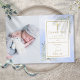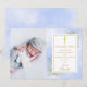 Guld signatur blå akvarell grönska blomster, dop dopfödsel foto tackkort. Personifiera med ditt foto och speciellt dop, dopfödsel tackmeddelande i elegant guld typografi. Designad av Thisisnotme