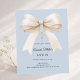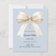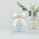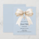 Fira hans speciella dag med denna eleganta dammiga blå dopinbjudan med en mjuk elfenbensfärgad satinbåge och detaljer i delikat guld.