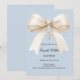 Fira hans speciella dag med denna eleganta dammiga blå dopinbjudan med en mjuk elfenbensfärgad satinbåge och detaljer i delikat guld.