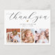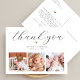 Skapa ditt eget vackra dop tack-fotocollagekort för att tacka vänner och familj för att de välkomnade din lilla en till den kristna gemenskapen! Den eleganta och minimalistiska designen har en collage av tre personliga foton längst ner och elegant typografi högst upp med ditt "tack"-meddelande i ett chic script och din babys namn och datum. Det finns också ett litet hjärta. På baksidan finns ett anpassningsbart meddelande med era namn. Gör det unikt genom att ersätta text och bilder genom att klicka på "Personalisera"-knappen.