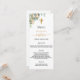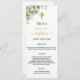 Dopmottagning meny kort. Anpassa och lägg till ett namn, datum och menyn. En chic vit bakgrund. Dekorerad med akvarellmålade eucalyptusblad, kvistar, grönska, falska guldblad. Ett falskt guldkors.